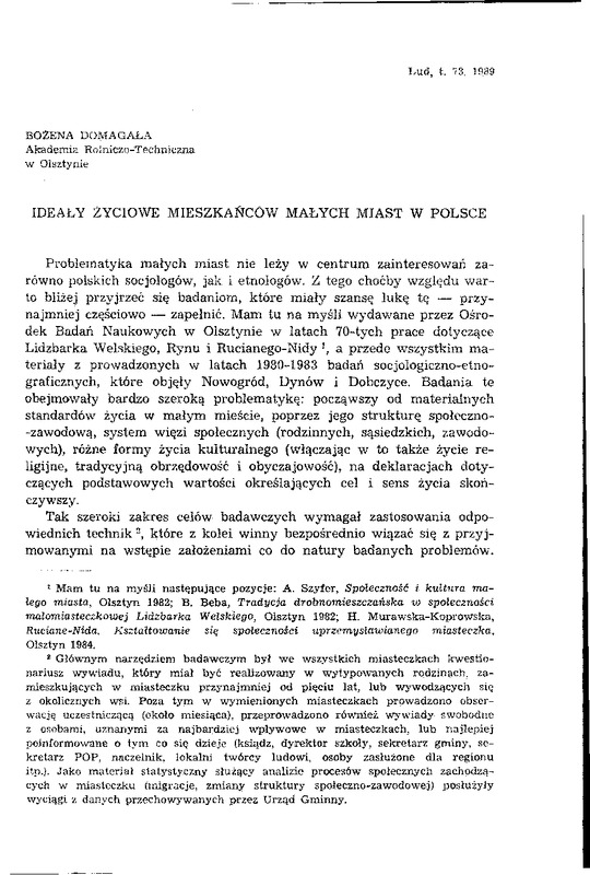 Ideały życiowe mieszkańców małych miast w Polsce / LUD 1989-90 t.73