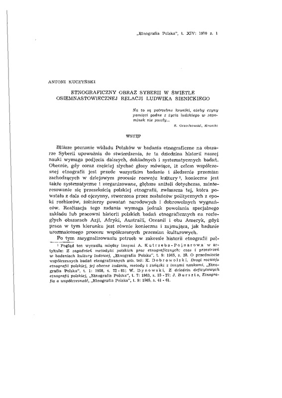 Etnograficzny obraz Syberii w świetle osiemnastowiecznej relacji Ludwika Sienickiego / ETNOGRAFIA POLSKA 1970 t.14 z.1