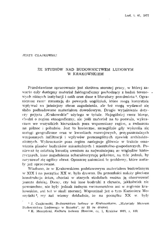 Ze studiów nad budownictwem ludowym w Krakowskiem / LUD 1977 t.61
