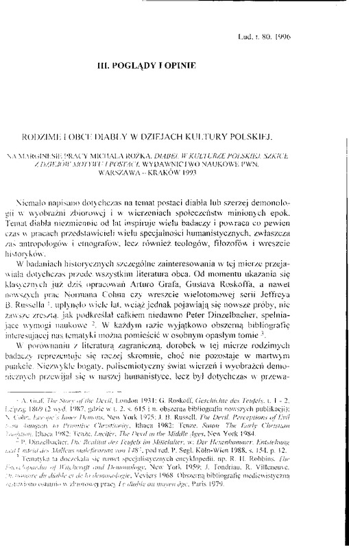 - Rodzime i obce diabły w dziejach kultury polskiej / LUD 1996 t.80