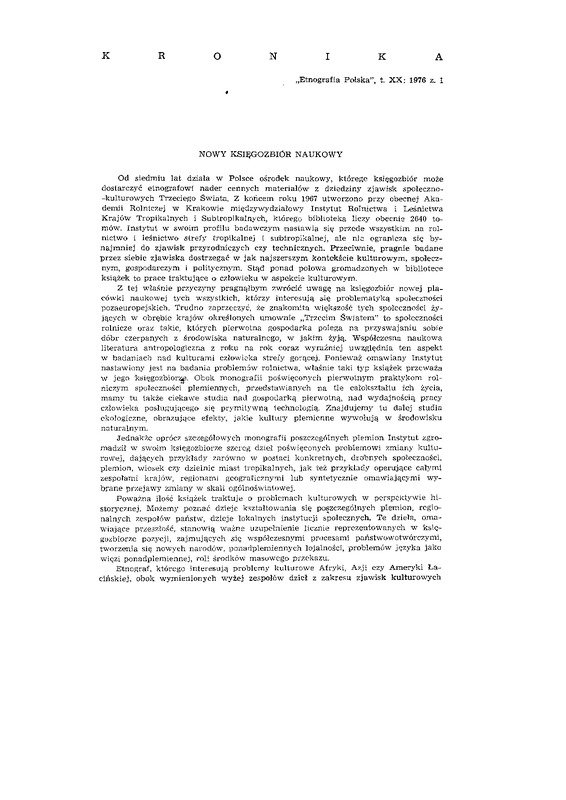 - Kronika / ETNOGRAFIA POLSKA 1976 t.20 z.1
