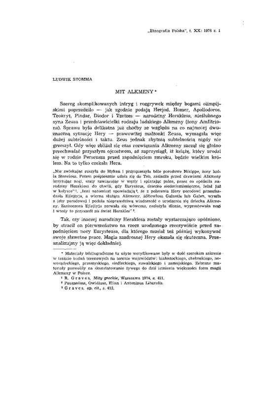 Mit Alkmeny / ETNOGRAFIA POLSKA 1976 t.20 z.1
