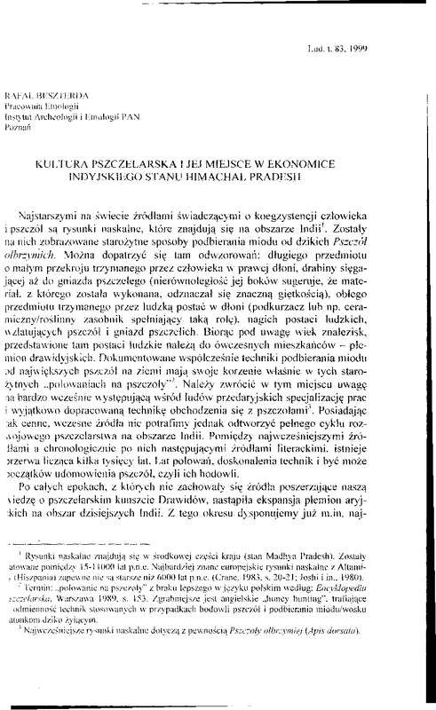 Kultura pszczelarska i jej miejsce w ekonomice indyjskiego stanu Himachal Pradesh / LUD 1999 t.83