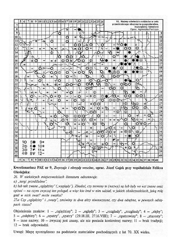 Komentarze do Polskiego Atlasu Etnograficznego t.8: Zwyczaje i obrzędy weselne cz.I: Od zalotów do ślubu cywilnego, red nauk. Agnieszka Pieńczak s.115 ( mapa nr16 )