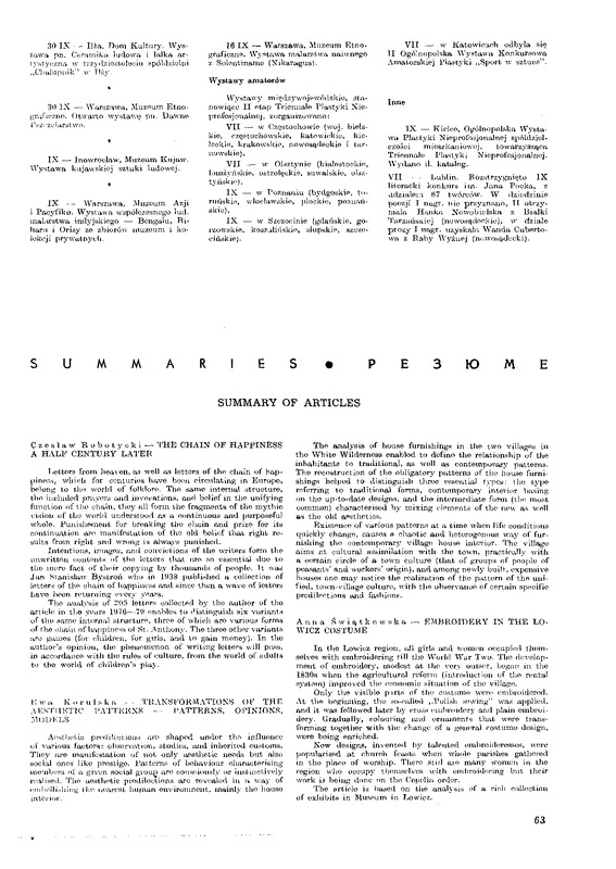 - Summary of articles / Polska Sztuka Ludowa - Konteksty 1981 t.35 z.1