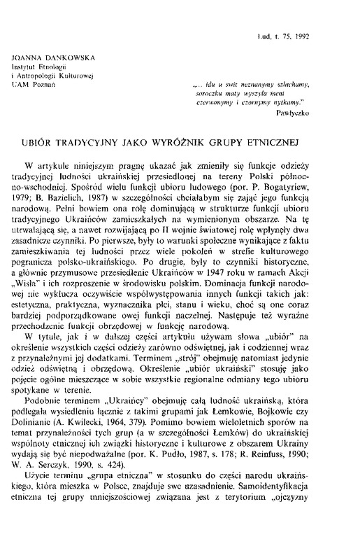 - Ubiór tradycyjny jako wyróżnik grupy etnicznej / LUD 1992 t.75