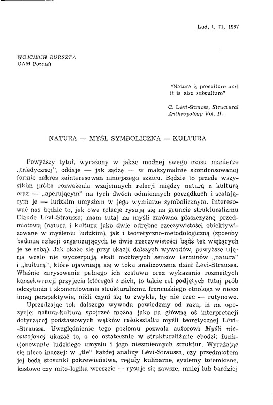 - Natura - myśl symboliczna - kultura / LUD 1987 t.71