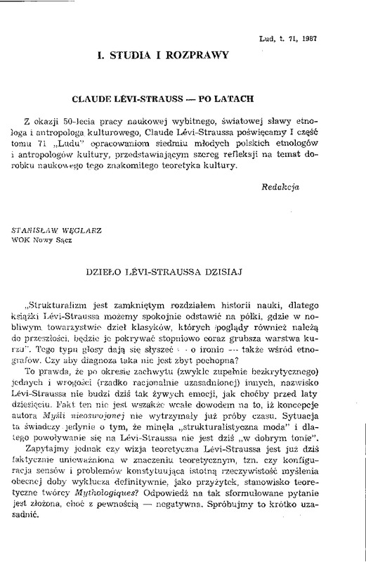 Dzieło Lévi-Straussa dzisiaj / LUD 1987 t.71
