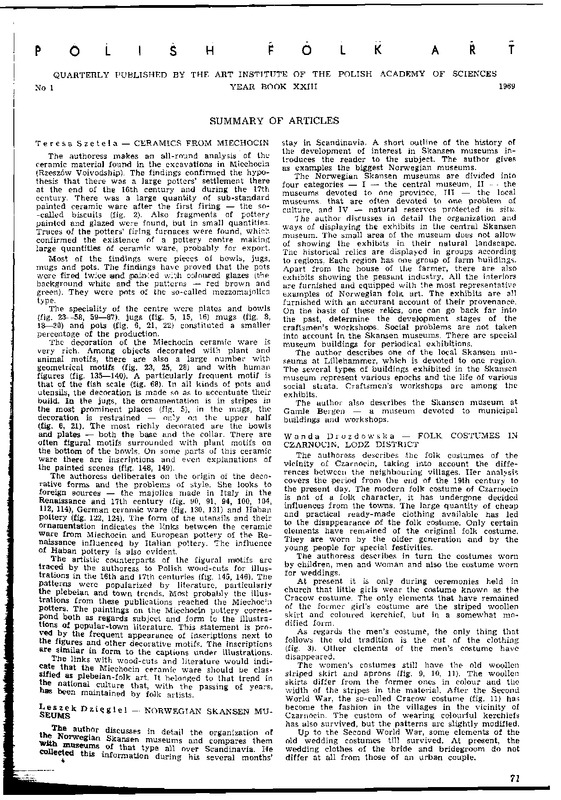 - Summary of articles / Polska Sztuka Ludowa - Konteksty 1969 t.23 z.1