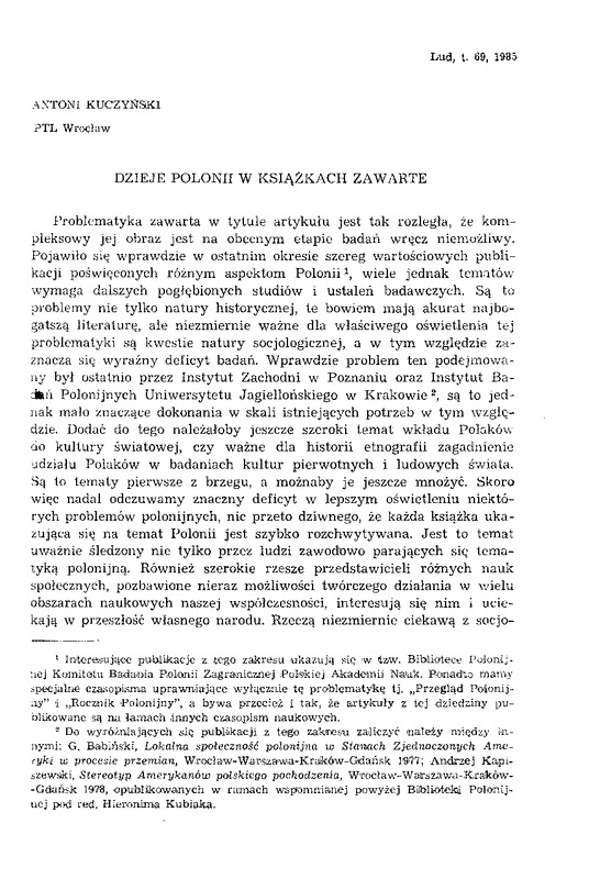 - Dzieje Polonii w książkach zawarte / LUD 1985 t.69