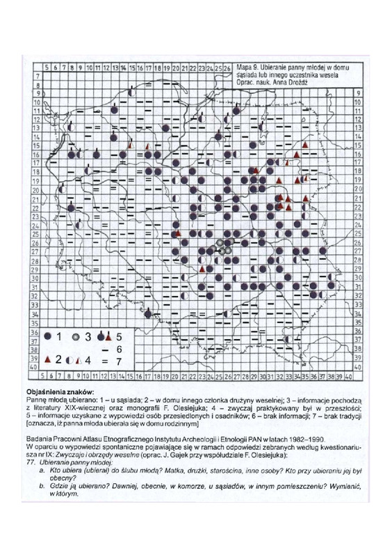 Komentarze do Polskiego Atlasu Etnograficznego t.8. Anna Drożdż: Zwyczaje i obrzedy weselne cz.3: Współdziałanie społeczności wiejskiej podczas obrzędu weselnego (druga połowa XIX wieku i XX wiek) ; mapa nr 9