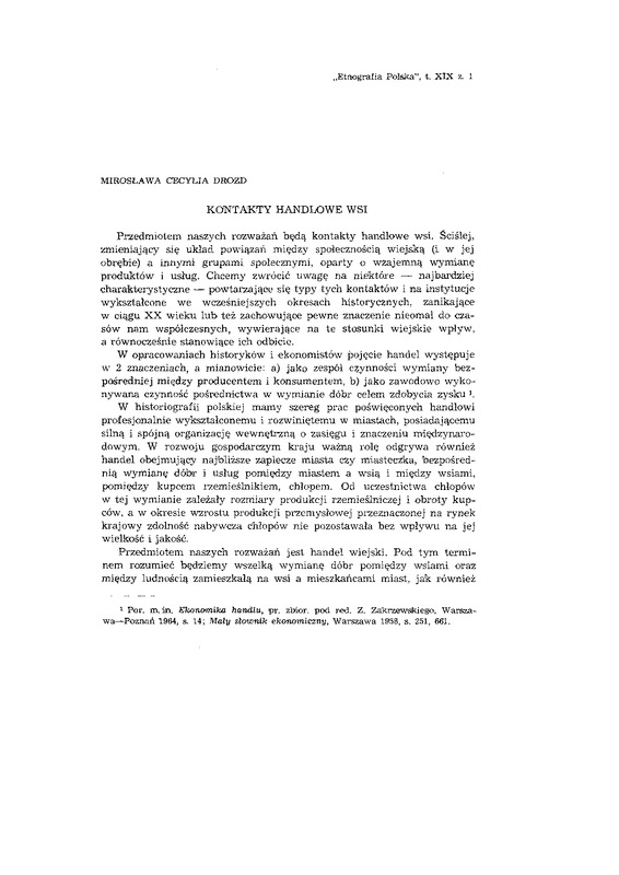 - Kontakty handlowe wsi / ETNOGRAFIA POLSKA 1975 t.19 z.1