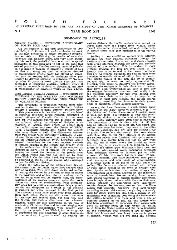 - Summary of articles/ Polska Sztuka Ludowa 1962 t.16 z.4