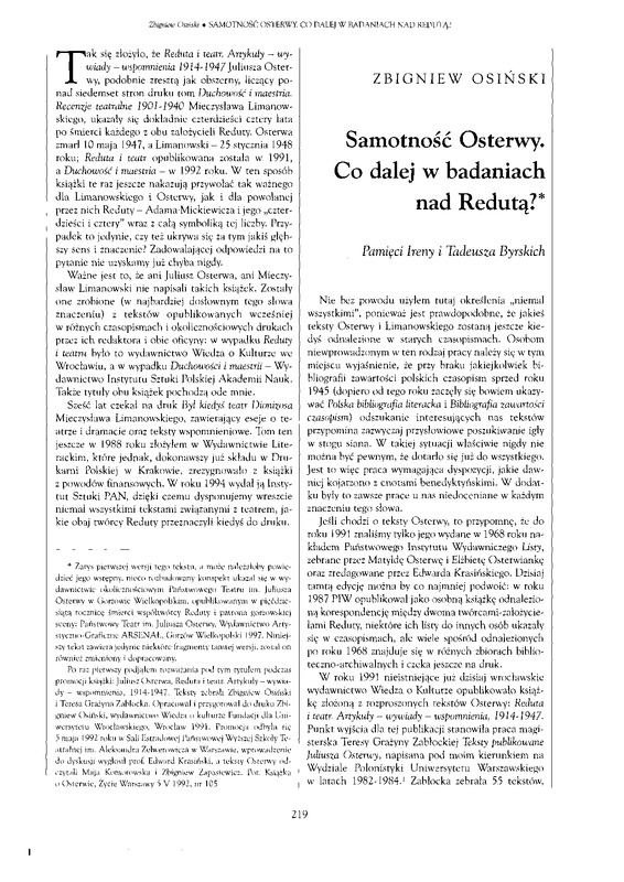 - Samotność Osterwy. Co dalej w badaniach nad Redutą? / Polska Sztuka Ludowa - Konteksty 2002 t.56 z.1-2