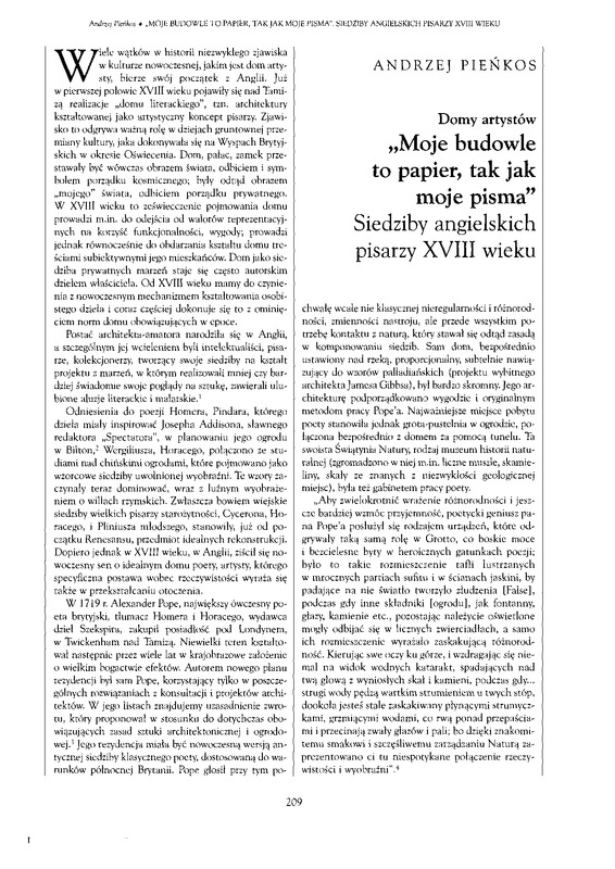 Moje budowle to papier, tak jak moje pisma. Siedziby angielskich pisarzy XVIII wieku / Polska Sztuka Ludowa - Konteksty 2002 t.56 z.1-2