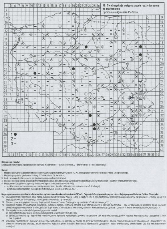 Komentarze do Polskiego Atlasu Etnograficznego t.8: Zwyczaje i obrzędy weselne cz.2: Rola i znaczenie swata w kojarzeniu małżeństw pod red.nauk.Zygmunta Kłodnickiego (mapa nr 18)