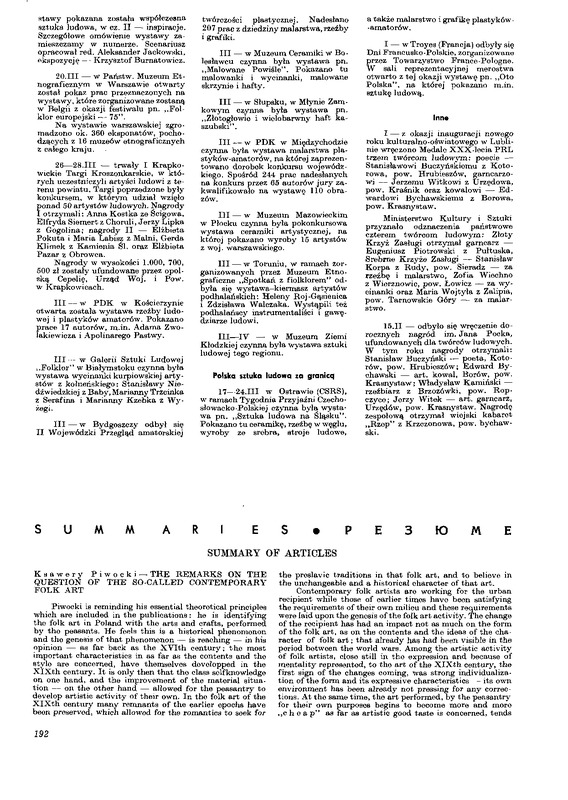 - Summary of articles / Polska Sztuka Ludowa - Konteksty 1975 t.29 z.3