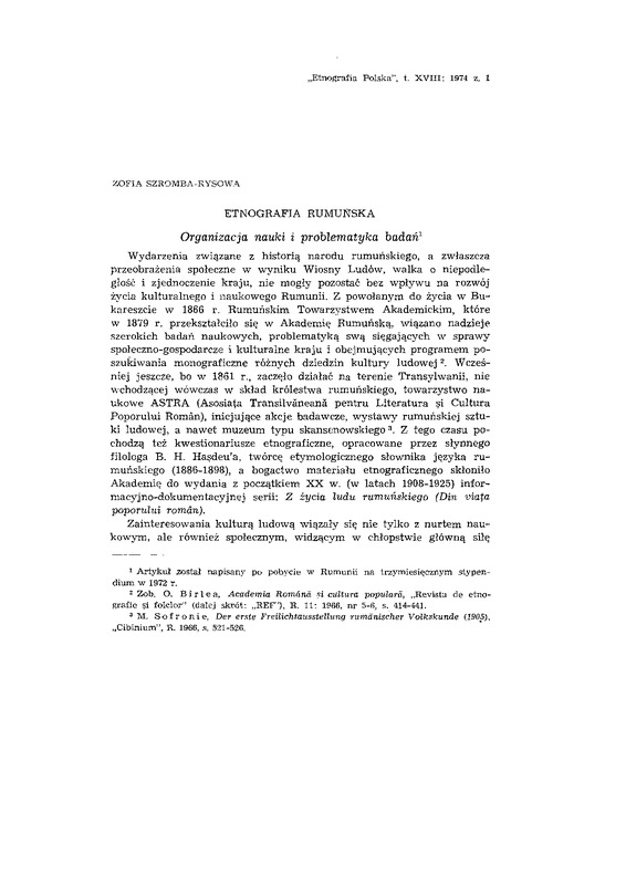 - Etnografia rumuńska / ETNOGRAFIA POLSKA 1974 t.18 z.1