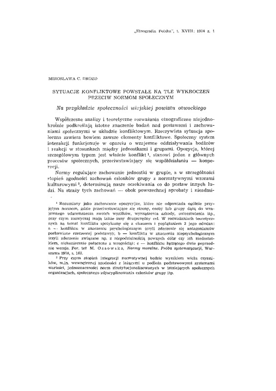 Sytuacje konfliktowe powstałe na tle wykroczeń przeciw normom społecznym / ETNOGRAFIA POLSKA 1974 t.18 z.1