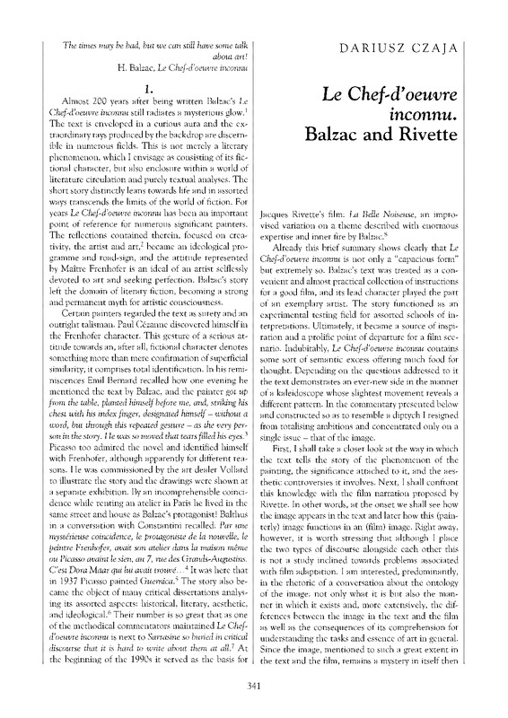 Le Chef-d'oeuvre inconnu. Balzac and Rivette/ Polska Sztuka Ludowa - Konteksty 2014 Special Issue