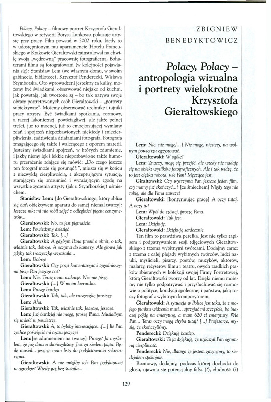 Polacy, Polacy - antropologia wizualna i portrety wielokrotne Krzysztofa Gierałtowskiego/ Polska Sztuka Ludowa - Konteksty 2005 t.59 z.1