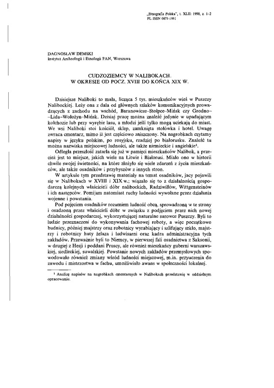 Cudzoziemcy w Nalibokach w okresie od początku XVIII do końca XIX w. / ETNOGRAFIA POLSKA 1998 t.42