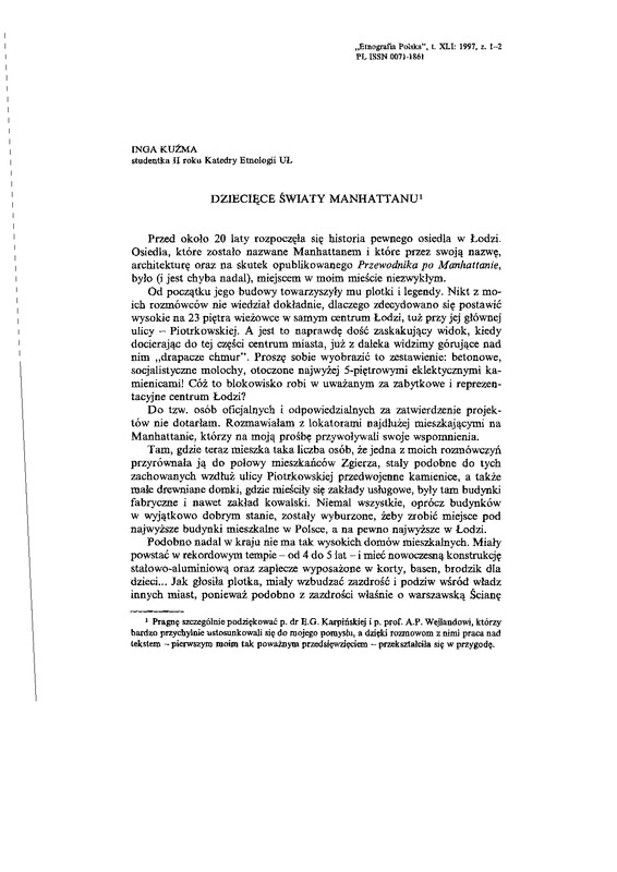 - Dziecięce światy Manhattanu / ETNOGRAFIA POLSKA 1997 t.41