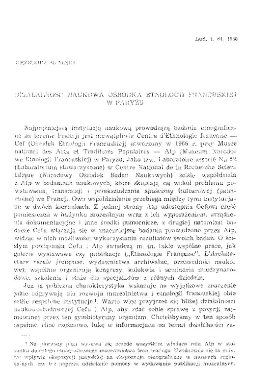 - Działalność naukowa Ośrodka Etnologii Francuskiej w Paryżu / LUD 1980 t.64