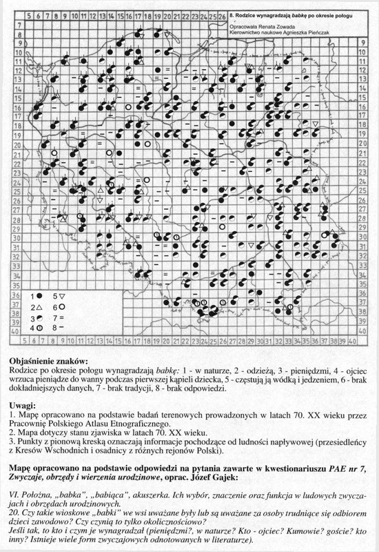 Rodzice wynagradzają 'babkę' po okresie połogu/ Komentarze do Polskiego Atlasu Etnograficznego (mapy)