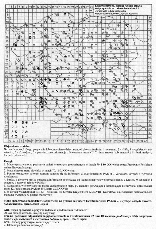 Nazwa demona, którego główną funkcją jest porywanie lub odmienianie dzieci, I/ Komentarze do Polskiego Atlasu Etnograficznego (mapy)