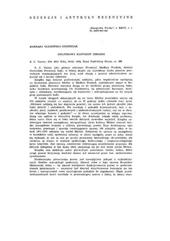 - Recenzje i artykuły recenzyjne / ETNOGRAFIA POLSKA 1982 t.26 z.1
