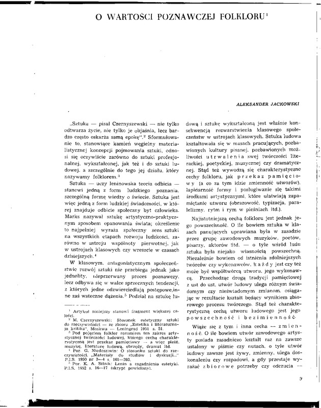 O wartości poznawczej folkloru / Polska Sztuka Ludowa - Konteksty 1953 t.7 z.1