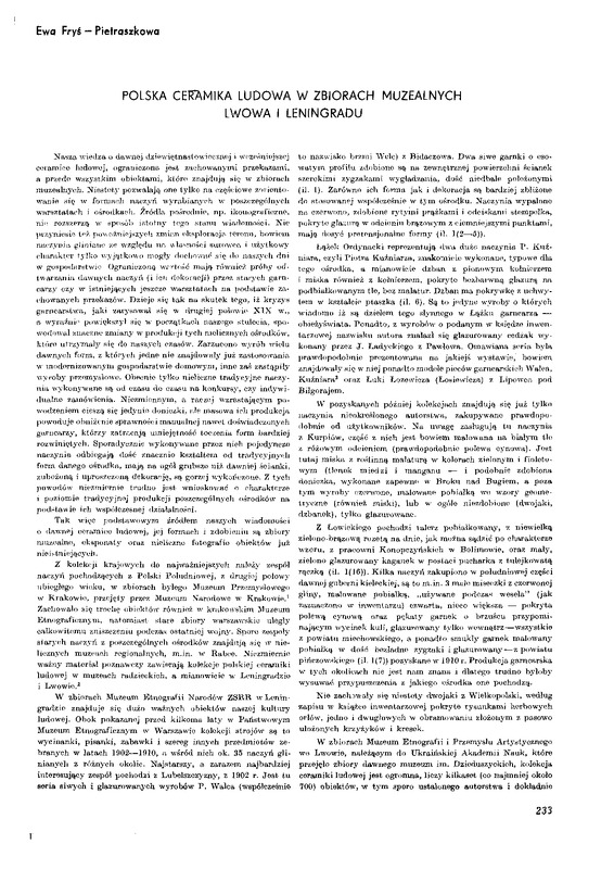 Polska ceramika ludowa w zbiorach muzealnych Lwowa i Leningradu / Polska Sztuka Ludowa - Konteksty 1981 t.35 z.3-4
