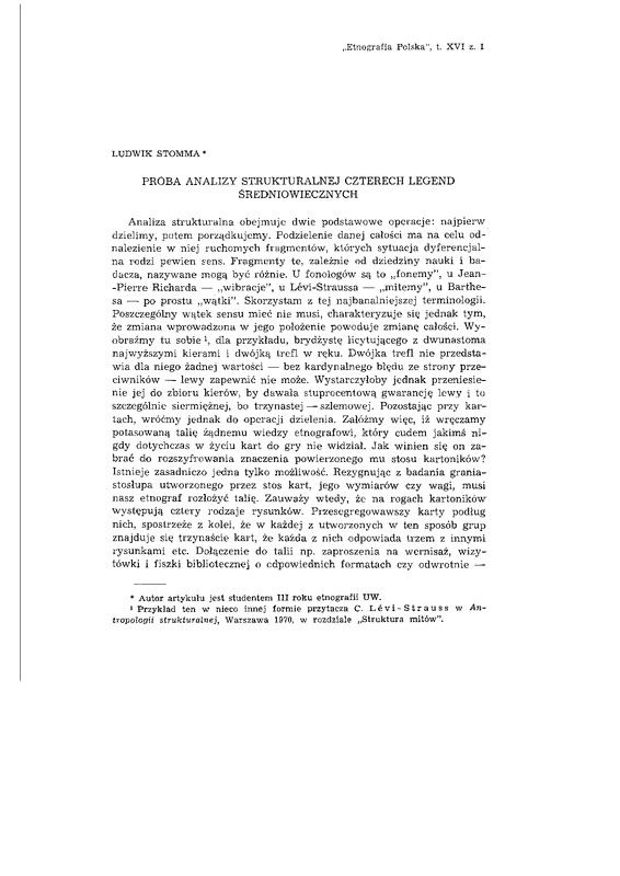 Próba analiza strukturalnej czterech legend średniowiecznych / ETNOGRAFIA POLSKA 1972 t.16 z.1