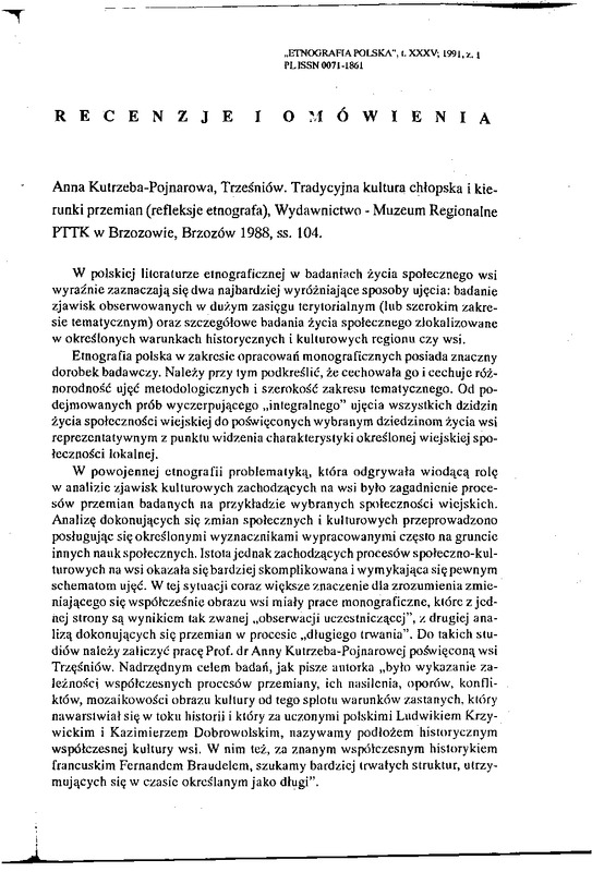 - Recenzje i omówienia / ETNOGRAFIA POLSKA 1991 t.35 z.1