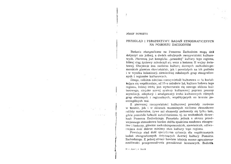 - Przegląd i perspektywy badań etnograficznych na Pomorzu Zachodnim/ LUD 1963 t.49