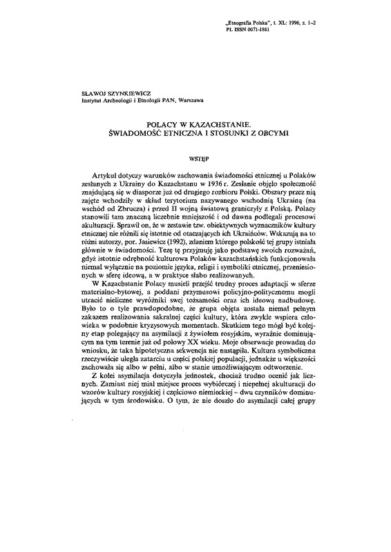 Polacy w Kazachstanie. Świadomość etniczna i stosunki z obcymi / ETNOGRAFIA POLSKA 1996 t.40