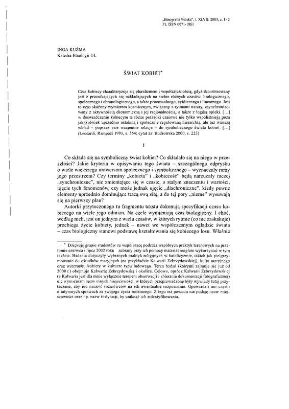 - Świat kobiet / ETNOGRAFIA POLSKA 2003 t.47
