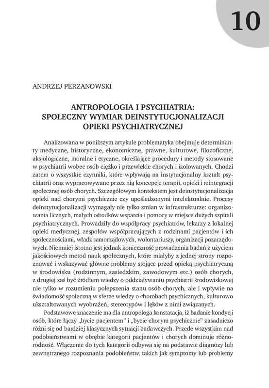 Antropologia i psychiatria: społeczny wymiar deinstytucjonalizacji opieki psychiatryczneji / Antropologia stosowana