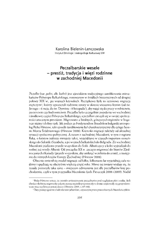 Peczalbarskie wesele - prestiż, tradycja i więzi rodzinne w Zachodniej Macedonii / Antropolog wobec współczesności