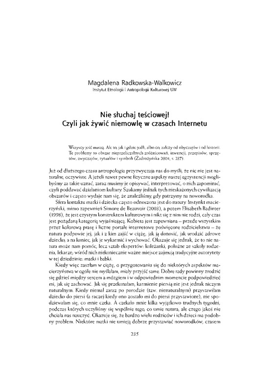 Nie słuchaj teściowej!czyli jak żywić niemowlę w czasach Internetu/ Antropolog wobec współczesności