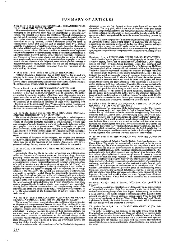 Summary of articles / Polska Sztuka Ludowa - Konteksty 1992 t.46 z.3-4