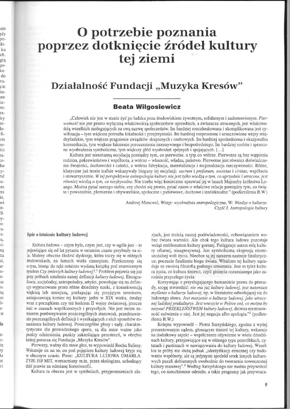 O potrzebie poznania poprzez dotknięcie źródeł kultury tej ziemi / Polska Sztuka Ludowa - Konteksty 1998 t.52 z.1