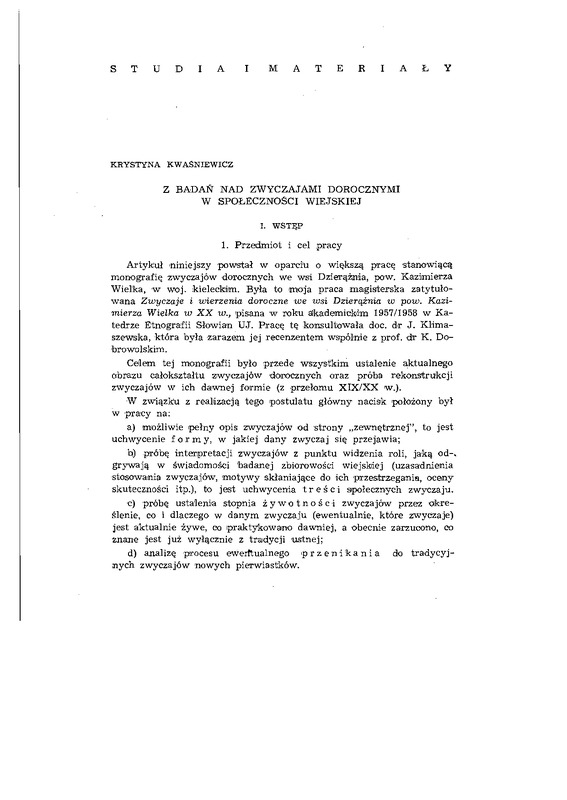 Z badań nad zwyczajami dorocznymi w społeczności wiejskiej / ETNOGRAFIA POLSKA 1965 t.9