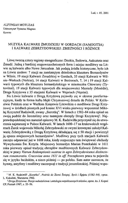 Muzyka Kalwarii Żmudzkiej w Gordach(Samogitia) i Kalwarii Zebrzydowskiej : zbiezności i różnice / LUD 2001 t.85