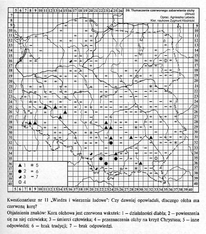 Tłumaczenie czerwonego zabarwienia olchy (Alnus glutinosa L.)/ Komentarze do Polskiego Atlasu Etnograficznego (mapy)