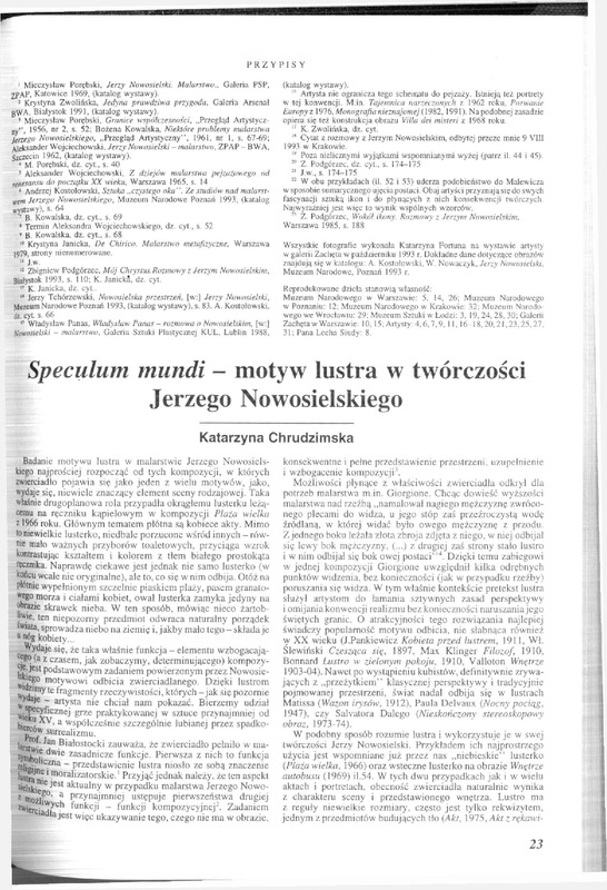 Speculum mundi - motyw lustra w twórczości Jerzego Nowosielskiego / Polska Sztuka Ludowa - Konteksty 1996 t.50 z.3-4