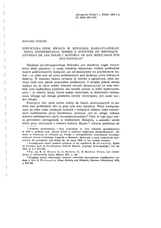 Struktura epok świata w mitologii nahuatlańskiej. Nowa interpretacja wersji z "Histoyre du Mechique", "Leyenda de los Soles" i "Historia de los mexicanos por sus pinturas" / ETNOGRAFIA POLSKA 1985 t.29 z.2