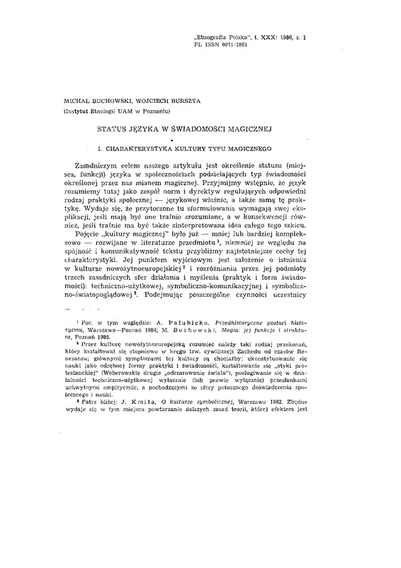 - Status języka w świadomości magicznej / ETNOGRAFIA POLSKA 1986 t.30 z.1