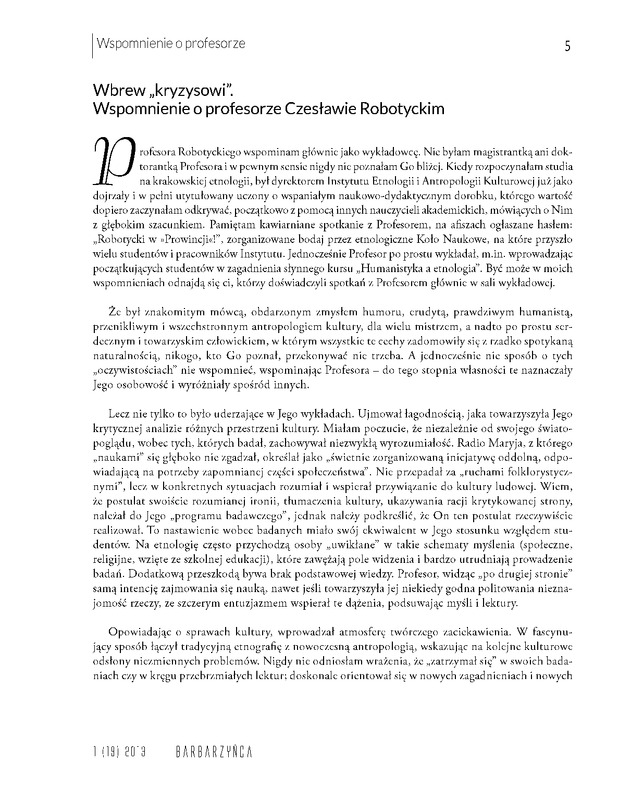 - Barbarzyńca - pismo antropologiczne 2013 nr 1(19) s.5-6
